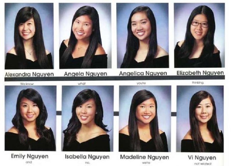 Hình ảnh học sinh gốc Việt mang họ Nguyễn trên niên giám hàng năm luôn gây chú ý một cách thú vị tại các trường trung học, nhất là khi các em mặc đồng phục giống nhau.