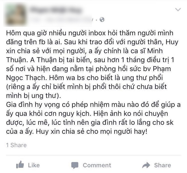 Đau lòng: Ca sĩ nổi tiếng của xứ Việt bị ung thư phổi