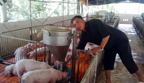 Theo chân ông Chuẩn đến thăm trại heo gồm 150 heo đẻ, 1.100 heo thịt trên diện tích 1ha. Trại heo được ông chia làm nhiều khu vực dành cho các loại heo khác nhau. Chuồng trại đều được thiết kế thông thoáng, sạch sẽ, có vòi uống nước tự động, có đèn sưởi ấm, bố trí cả chỗ vui chơi cho heo... Riêng đàn heo nái đều có sổ ghi thông tin từng con. Dù trang trại ông cách biệt với khu dân cư, nhưng vấn đề môi trường luôn được đảm bảo khi ông xây dựng hầm biogas để thu gom, xử lý chất thải.
