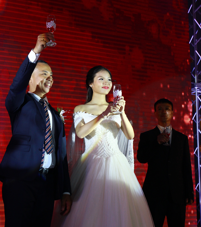 Tối 10/9, hôn lễ của kiện tướng dancesport và cô dâu Khánh Linh được tổ chức tại Cung văn hóa Hữu nghị Việt Xô Hà Nội. Vốn là người kín tiếng nên giám khảo Bước nhảy hoàn vũ không muốn bị truyền thông chú ý quá nhiều.