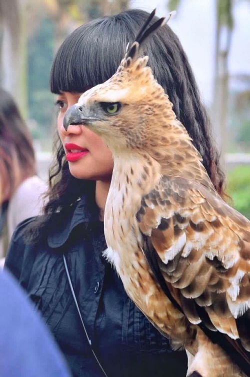"Khi mình yêu động vật, gần gũi, sống chân thành chúng thì mới chúng mới có tình cảm với mình và biết nghe lời", đó là chia sẻ của Đặng Phương. Trong ảnh, Phương chụp cùng loài Diều núi.