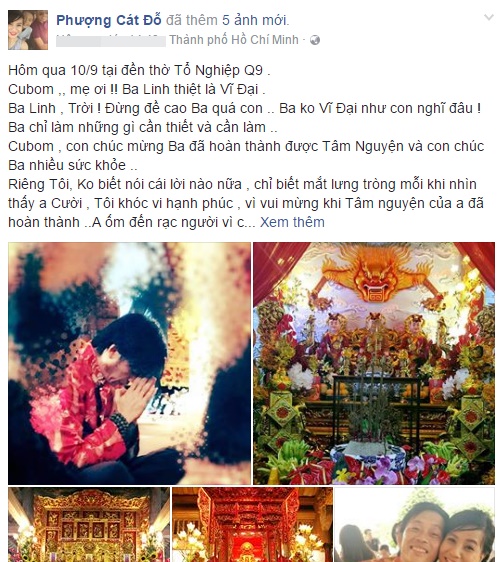 Cát Phượng cho biết: Hôm qua 10/9 tại đền thờ Tổ Nghiệp Quận 9.