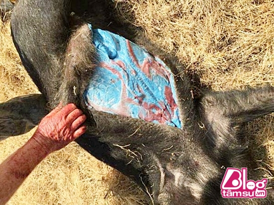 Càng rạch lớp bụng ra, người ta càng khó hiểu vì lớp màng màu xanh cực lớn, dường như bao bọc toàn thân lợn rừng. Nhìn vào kỹ hơn, họ mới nhận ra thực chất đây là lớp mỡ của nó.