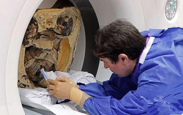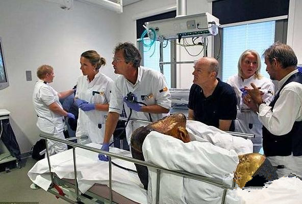 Các nhà khảo cổ và sinh vật học đều chăm chú nhìn lên màn hình máy quét để chờ đợi kết quả.