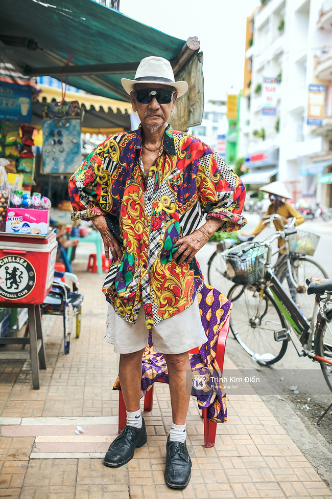 Không thông thạo lắm về thời trang, nhưng cũng như đa số những người đi đường, cư dân mạng khác thôi, tôi bị hiếu kỳ và phấn khích bởi chính bộ đồ mà cụ già kia đang mặc. Đầy màu sắc, nổi bật và rất đường phố. Chiếc áo sơ mi hoa cố tình khuy lệch, dưới đầu gối là chiếc khẩu trang y tế bịt ngang, đôi giày Tây tươm tất, không mới nhưng đủ lịch sự và… văn minh. Đội mũ phớt, đeo kính râm với gương mặt hơi nhăn, chao ôi, ngầu chi mà ngầu dữ!