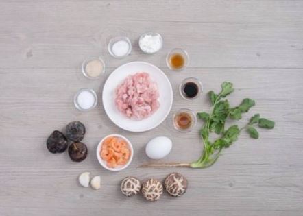 Trộn thịt lợn với lòng trắng trứng, một chút dầu ăn, nước tương, đường, dầu mè, bột bắp, hạt tiêu và để khoảng 20 phút cho ngấm gia vị. Tiếp đó cho củ năng, tỏi, tôm khô, rau mùi vào và trộn đều.