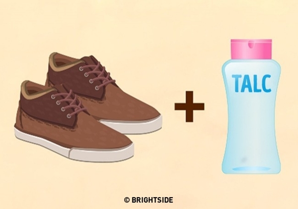 Để giảm lực ma sát giữa bề mặt mu bàn chân với giày, bạn hãy rắc một chút phấn rôm lên chân trước khi xỏ giày. Nếu bạn không có thói quen đi vớ thì hãy cho 1 ít phấn rôm vào giày, hay bôi lên chân rồi đi vào cũng được. Phấn rôm ngăn ngừa đổ mồ hôi chân và cũng khử được phần nào mùi rất tốt đấy.