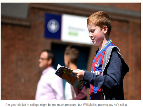 Will sinh năm 2007 và tốt nghiệp trung học vào năm nay khi mới 9 tuổi. Chú nhóc vừa được nhận vào Trường cao đẳng cộng đồng Allegheny County (CCAC). Em đang trong quá trình thích nghi với môi trường mới, nơi mà không có bạn đồng trang lứa mà chỉ toàn các anh chị lớn tuổi.