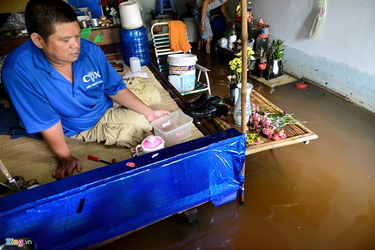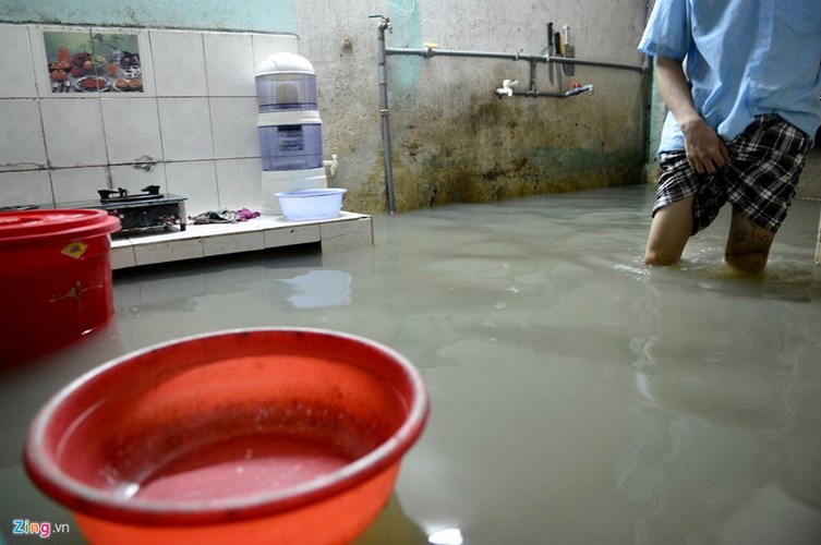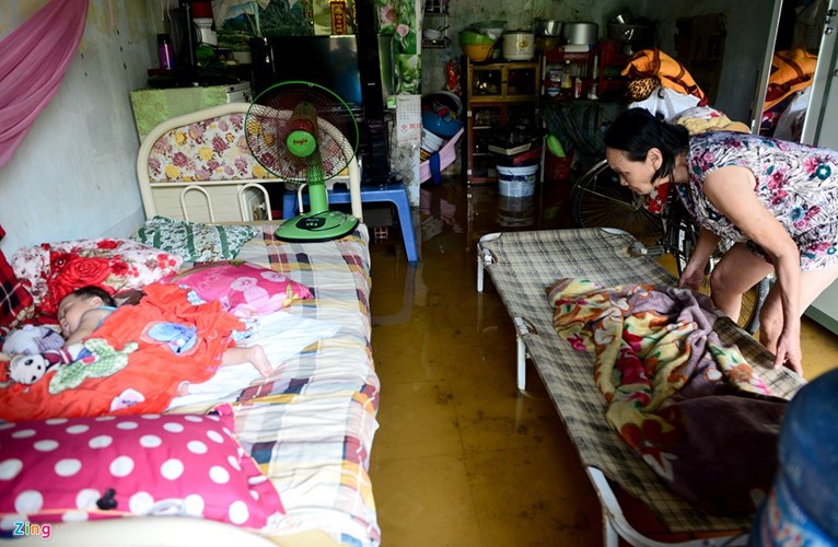 Mọi sinh hoạt của gia đình bà đều phải lội trong nước để đi lại. "Không thể bơm được, phải chờ 2-3 ngày nước mới rút hết được. Nếu mưa to nữa thì chưa biết khi nào gia đình tôi mới trở lại cuộc sống bình thường", người phụ nữ gần 70 tuổi này, ngán ngẩm.