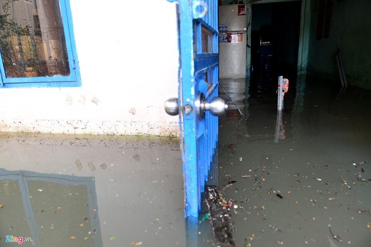 Các khu trọ lụp xụp ở vị trí thấp trũng trong khu vực này cũng lâm vào cảnh tương tự. Nước vẫn bao vậy từ ngoài sân vào đến các phòng.