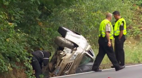 Cảnh sát địa phương vừa đăng bức ảnh chiếc xe bị lật ngửa ở khu vực Bonny Slope, tây Portland (bang Oregon, Mỹ).