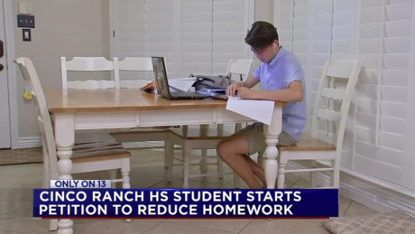 Một học sinh ở Mỹ thay vì chờ đợi người lớn quan tâm tới vấn đề quá tải bài tập về nhà thì đã tự viết bản kiến nghị yêu cầu chính quyền giảm bài tập về nhà và được hơn 8.300 học sinh ký tên ủng hộ.