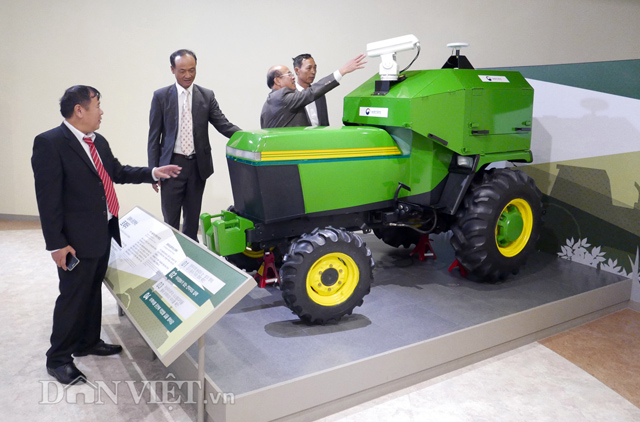 Các nông dân Việt Nam xuất sắc tham quan máy nông nghiệp thông minh có giá 2 tỷ đồng được trưng bày tại Viện Khoa học Nghiên cứu Nông nghiệp Quốc gia tại Hàn Quốc.