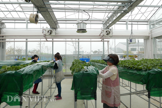 Mô h́nh trồng dâu tây trong nhà kính tại Viện nghiên cứu rau, củ, quả.