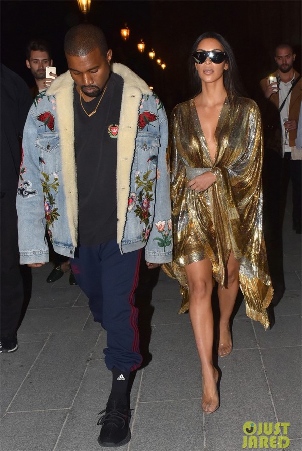 Tối 29/9, vợ chồng Kim Kardashian – rapper Kanye West cùng chị gái Kourtney tới bữa tiệc của nhà mốt Balmain ở một nhà hàng tại Paris, Pháp. Chị em nhà Kardashian đang có những ngày dự Tuần lễ thời trang Paris tại đây, còn Kanye cũng bận rộn với show thời trang riêng.