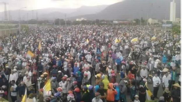 Cuộc biểu tình của các ngư dân tức giận và các nhà hoạt động từ ba tỉnh - Quảng Bình, Nghệ An và Hà Tĩnh – xảy ra sau khi hàng trăm người dân từ những vùng kiện Formosa vào tuần trước đòi bồi thường ô nhiễm do nhà máy gây ra dẫn đến cá chết hàng loạt trong vùng biển ngoài khơi duyên hải Việt Nam.