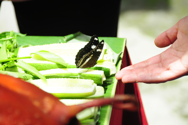 Con bướm đen đậu trên mộ, vờn trên mâm đồ cúng là hình ảnh lạ khiến nhiều người đến dự giỗ không khỏi xúc động. Nhiều người bảo nhau phải chăng trước tình cảm của mọi người, Lê Công đã về.