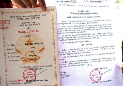 Một nữ sinh đại học Sài Gòn vừa ra trường bị ghi nhầm giới tính trên bằng tốt nghiệp. Sau khi phản ánh lên lãnh đạo nhà trường, nữ sinh này chỉ nhận được quyết định chỉnh sửa thông tin thay vì được cấp lại tấm bằng mới. Sự việc đang gây tranh cãi trong cộng đồng. Nhiều ý kiến cho rằng, quy định này khiến cơ hội xin việc làm của nữ sinh trên gặp khó khăn, bất lợi.