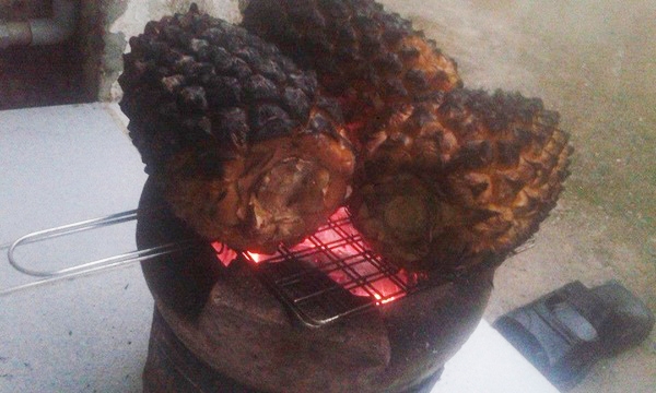 Dứa nướng trong lò.Trong dân gian vẫn còn truyền lại 2 bài thuốc khác với cách làm tương tự dùng để chữa sỏi thận, sỏi đường tiết niệu như sau: