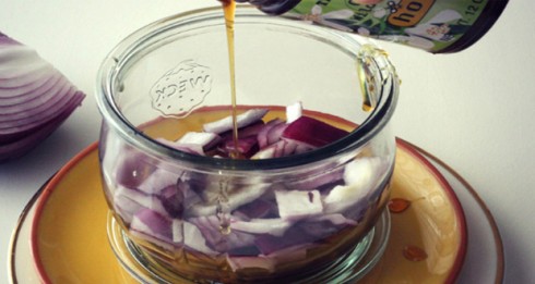 Hành tây tím và mật ong và hai nguyên liệu chính của công thức này.