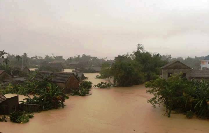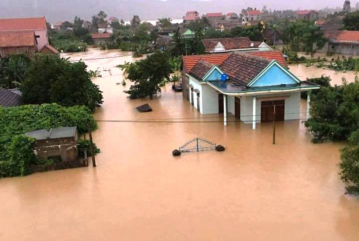 Hiện hàng ngàn ngôi nhà trên địa bàn tỉnh Quảng Bình bị chìm trong biển nước, nhiều địa phương bị cô lập.
