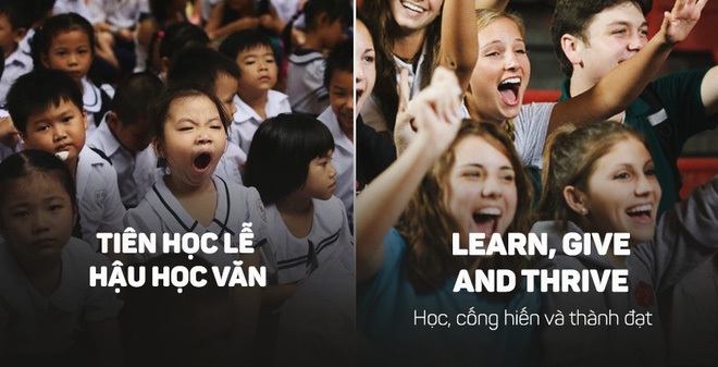Cũng câu hỏi đó nếu là một học sinh Mỹ thì câu trả lời rất đa dạng. Hai cậu con trai nhà tôi học ở trường PTCS Mosby Woods ở Fairfax, Virginia, có câu khẩu hiệu ngay cửa ra vào khiêm nhường chỉ có ba từ đơn giản "Learn, Give and Thrive – Học, cống hiến và thành đạt".