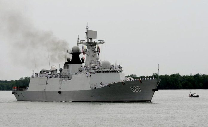 Khu trục hạm nhỏ Zhoushan (Châu Sơn) đang trên đường tiến vào thăm viếng một cảng của Malaysia ngày 7/10/2016. (Hình: Chinamil)