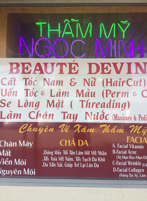 Một gian hàng thẩm mỹ của người Việt trong khu thương mại Eden ở Virginia (vùng thủ đô Hoa Thịnh Đốn)