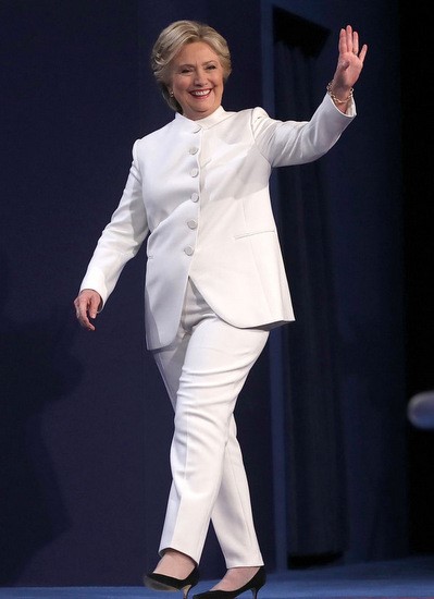 Trong buổi tranh luận thứ 3 với Donald Trump, bà Hillary Clinton diện bộ suit trắng tinh khôi, làm dấy lên nhiều giả thuyết về ý nghĩa sâu xa mà nó ẩn chứa.