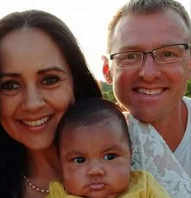 Vợ chồng Mercy chụp ảnh cùng Jacob, cậu bé mà cô nhận được từ tay nữ y tá.