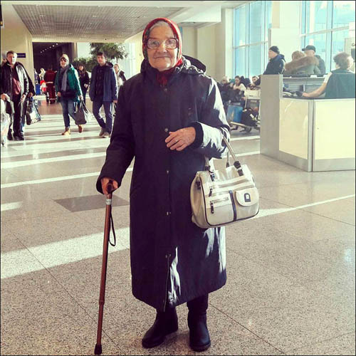 Yelena Yerkhova là một cụ bà sống ở thành phố Krasnoyarsk, Siberia và bắt đầu đi du lịch từ năm 83 tuổi. Từ đó tới nay, bà đã dành toàn bộ thời gian và lương hưu để khám phá các vùng đất trên thế giới. Trong ảnh là lúc bà chụp ảnh tại sân bay Domodevo, Moscow. Nga, trang Siberiantimes đưa tin ngày 26/10.