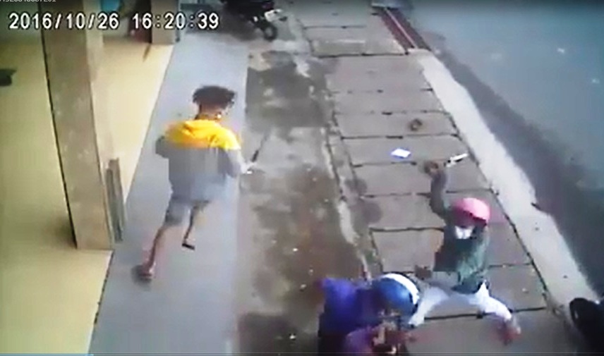 Đoạn clip ghi lại cảnh một nhóm côn đồ dùng hung khí chém tới tấp vào một thanh niên giữa phố đã gây xôn xao mạng xã hội. 3 người bịt khẩu trang dùng mã tấu chém tới tấp vào vai, lưng của một người khác trên đường Phạm Văn Thuận (thành phố Biên Hòa, tỉnh Đồng Nai) vào chiều ngày 26/10. Hiện công an đang truy tìm tung tích của 3 đối tượng trên.