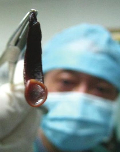 Bác sĩ đã lập tức lấy ra dị vật sống lâu ngày trong mũi cô gái trẻ. Kinh khủng hơn, đó là một con đỉa dài đến 2.6 cm. Con đỉa đã sống kí sinh trong mũi cô gái nhiều ngày.
