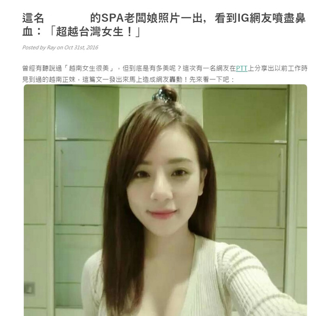 Cư dân mạng Trung Quốc nhiều ngày qua đang truy tìm tung tích một cô gái Việt vì quá xinh đẹp. Được biết cô gái này tên là Nguyễn Lan Phương, sinh năm 1994 và hiện đang làm chủ một spa ở Hà Nội. Mặc dù không phải hot girl nhưng cô gái trẻ này đã thu hút sự chú ý của cư dân mạng vì sự dễ thương, đáng yêu và quyến rũ.
