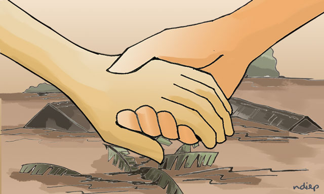 Hãy cùng nắm chặt tay nhau: “…Ai ơi chia sẻ nỗi niềm cùng quê hương. Ai ơi san sẻ tấm lòng vì yêu thương…” .Bằng những cách khác nhau, mỗi con người chúng ta hãy vì khúc ruột Miền Trung, vì tình yêu đồng loại để góp phần cho mỗi người dân vùng “rốn” lũ khắc phục khó khăn, tạo dựng cuộc sống mới.