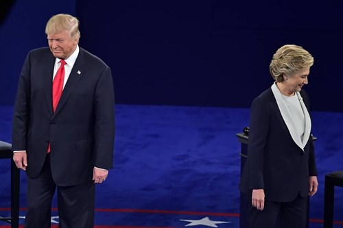Hai ứng viên tổng thống Donald Trump và Hillary Clinton sau một cuộc tranh luận được truyền hình trực tiếp. Ảnh Wall Street Journal