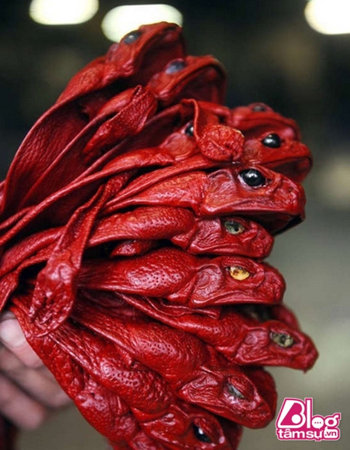 Đứng từ xa nhìn thì thấy rất giống với những quả ớt khô teo tóp phơi bên bờ tường tuy nhiên ai cũng phải “nổi da gà” khi lại gần. Đây thực ra chính là những con ếch phi tiêu đỏ cực độc đối với con người. Hiện những cá thể này chỉ còn lại rất ít và đang có nguy cơ bị tuyệt chủng.