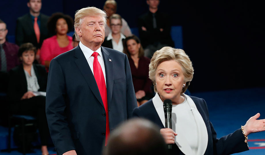 Donald Trump và Hillary Clinton trong cuộc tranh luận trước bầu cử.