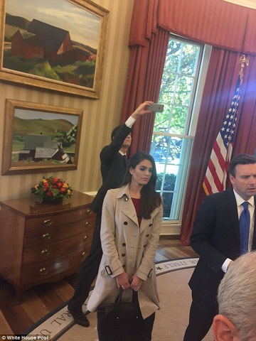 Kushner dùng điện thoại chụp ảnh bố vợ tiếp xúc với đương kim Tổng thống Obama ở phòng Bầu Dục.