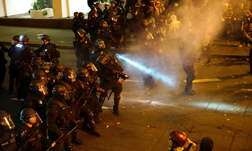 Cảnh sát Portland trước đó thông báo rằng họ đã dùng hơi cay với những người biểu tình ném các vật thể vào họ.