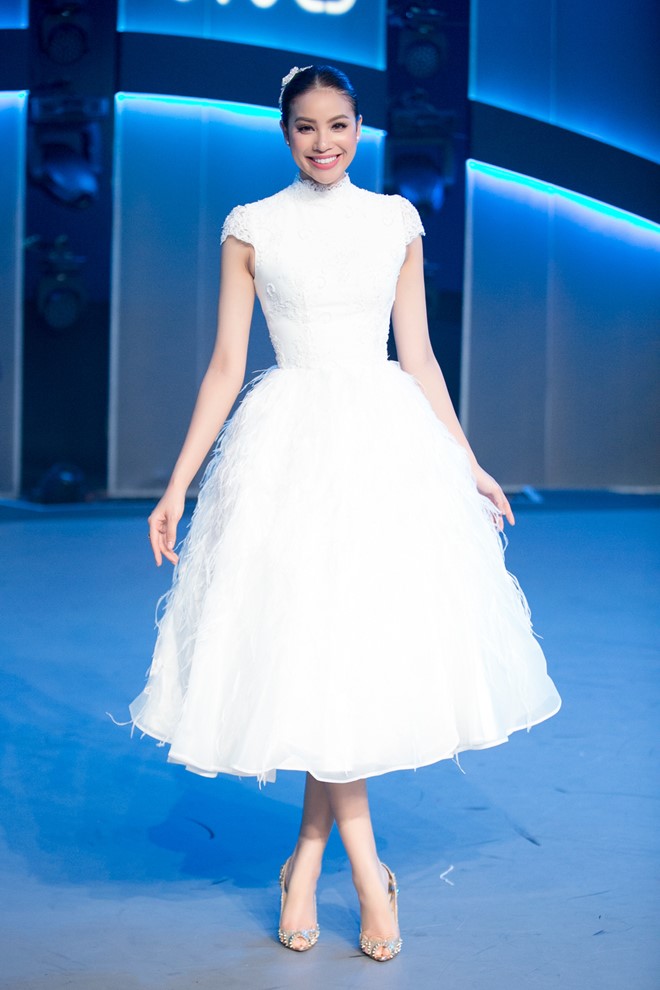 Phạm Hương chọn trang phục đầm trắng kết lông vũ quyến rũ của Lê Thanh Hòa khi ngồi ghế nóng chương trình Thử thách cùng bước nhảy