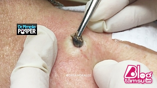 Sau khi làm mềm vùng da xung quanh, bác sĩ đã dùng kẹp chuyên dụng để bắt đầu nặn hạt đen cứng đầu này ra. Kinh hoàng khi thấy cả một cục nhân đen xì, khá to và cứng được bác sĩ lấy ra chứ không chỉ là vết đen nhỏ trên vai.