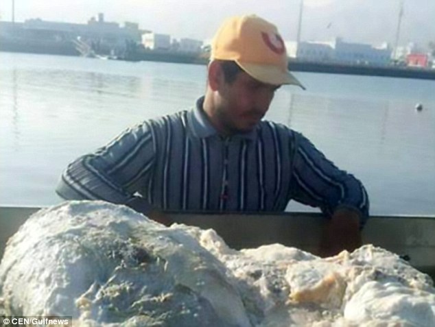 Ngư dân Khalid Al Sinani bất ngờ phát hiện một khối chất nôn cá voi có trọng lượng hơn 60kg, mắc vào lưới đánh cá của mình ở ngoài khơi bờ biển Qurayat, Oman. Các chuyên gia dự đoán nó sẽ được bán với giá hơn 2,5 triệu USD (tương đương 57 tỷ đồng).
