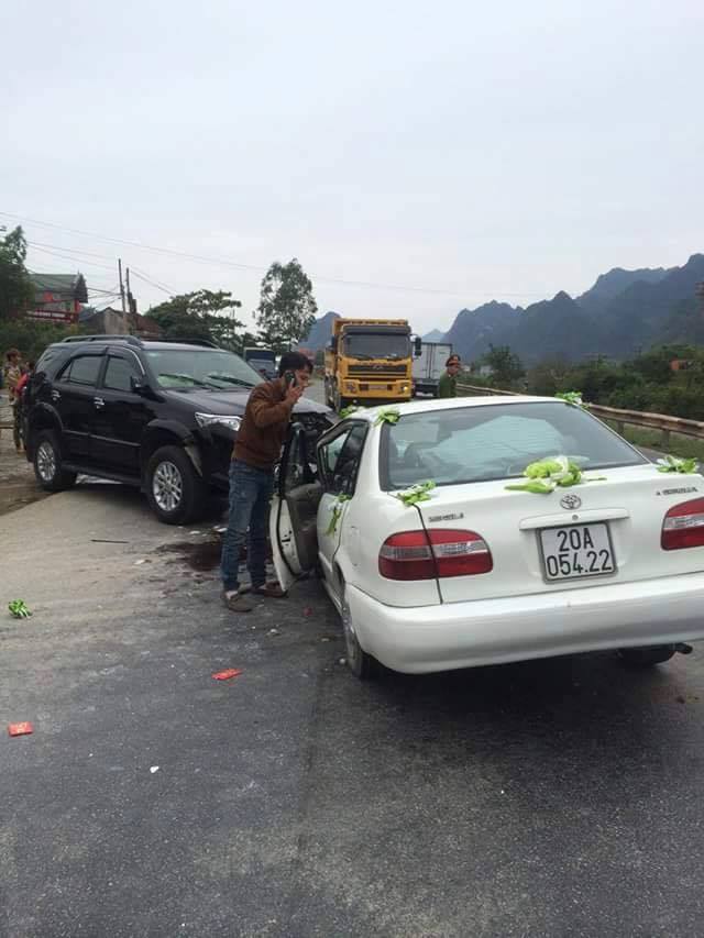 Theo chứng kiến của người dân địa phương, 2 ô tô đâm trực diện vào nhau khiến ô tô đưa dâu mang BKS 20A- 054.22 bị nát toàn bộ phần đầu khiến cả lái xe và cô dâu chú rể bị thương nặng, ô tô mang BKS 22A- 044.04 rất may không có người bị thương.