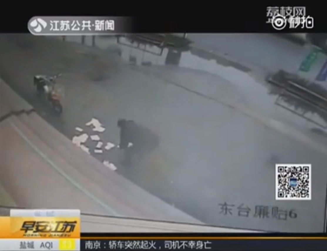 Một sự việc tương tự đã xảy ra năm ngoái tại tỉnh An Huy, khi một người phụ nữ vô tình đánh rơi vài nghìn nhân dân tệ lúc băng qua đường. Video an ninh cho thấy một số người qua đường đã vội vàng giúp cô nhặt tiền bị gió cuốn đi trên đường.
