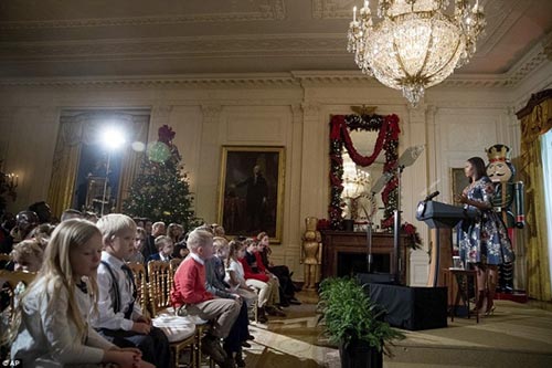 Đã nhiều năm gia đình nhà ông Obama đón Giáng sinh tại nhà Trắng. Sắp dời Nhà Trắng, đệ nhất phu nhân nước Mỹ muốn có những ấn tượng đã rất công phu chuẩn bị đón lễ Giáng sinh cuối cùng ở tại đây. Bà đã cùng nhóm thiết kế chuẩn bị suốt nhiều tháng để Nhà Trắng có một Giáng sinh lung linh với hàng nghìn dải ruy băng màu sắc, các cây thông lớn và những mô hình bánh gừng y như thật.