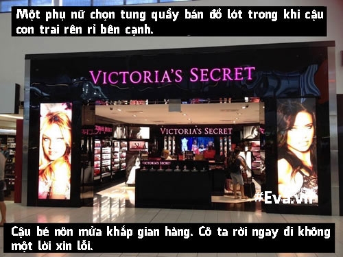 "Tôi nhớ như in chuyện này bởi vì nó rất kinh khủng. Người phụ nữ này đứng loay hoay ở quần bán hàng 30 phút và yêu cầu nhân viên cho xem hết món nọ đến món kia mà lúc đó cửa hàng rất đông khách. Cô ta cứ mải lục tung lên để xem trong khi cậu con trai liên tục kêu mệt. Nhưng thay vì rời đi thì cô ta lại yêu cầu cậu bé im lặng và kiên nhẫn. Một vài phút sau tôi nghe thấy tiếng nôn và ai đó thở hổn hển. Tôi chạy lại thì thấy cậu bé đã nôn mửa lên khắp sàn nhà và quầy hàng. Cảnh tượng thật gớm ghiếc. Nhưng sau đó thay vì xin lỗi thì cô ta nhanh chóng rời đi cùng với đứa con của mình.".