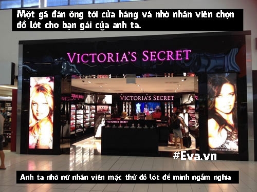 Những câu chuyện đời thực mà đáng cười chảy nước mắt ở các cửa hàng bán đồ lót như Victoria's Secret. Tất nhiên khách hàng mỗi người mỗi tính nhưng nhân viên bao giờ cũng tìm đủ mọi cách làm hài lòng "thượng đế" của họ. Nhưng quả thật có chuyện tức ơi là tức xong lại cũng phải bò lăn ra cười.