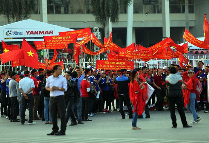 Trận đấu bắt đầu diễn ra, bên ngoài sân vẫn còn nhiều người hâm mộ muốn vào sân nhưng không có vé do sức chứa của SVĐ Mỹ Đình chỉ 4 vạn người.