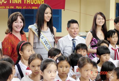 Đích thân tỉ phú Hoàng Kiều từng tháp tùng hai người đẹp Trương Tử Lâm và Ksenia Sukhinova sang Việt Nam để tham gia các công việc từ thiện. Họ từng đến nhiều tỉnh thành gặp gỡ, trao quà tận tay cho những người dân nghèo có hoàn cảnh khó khăn.